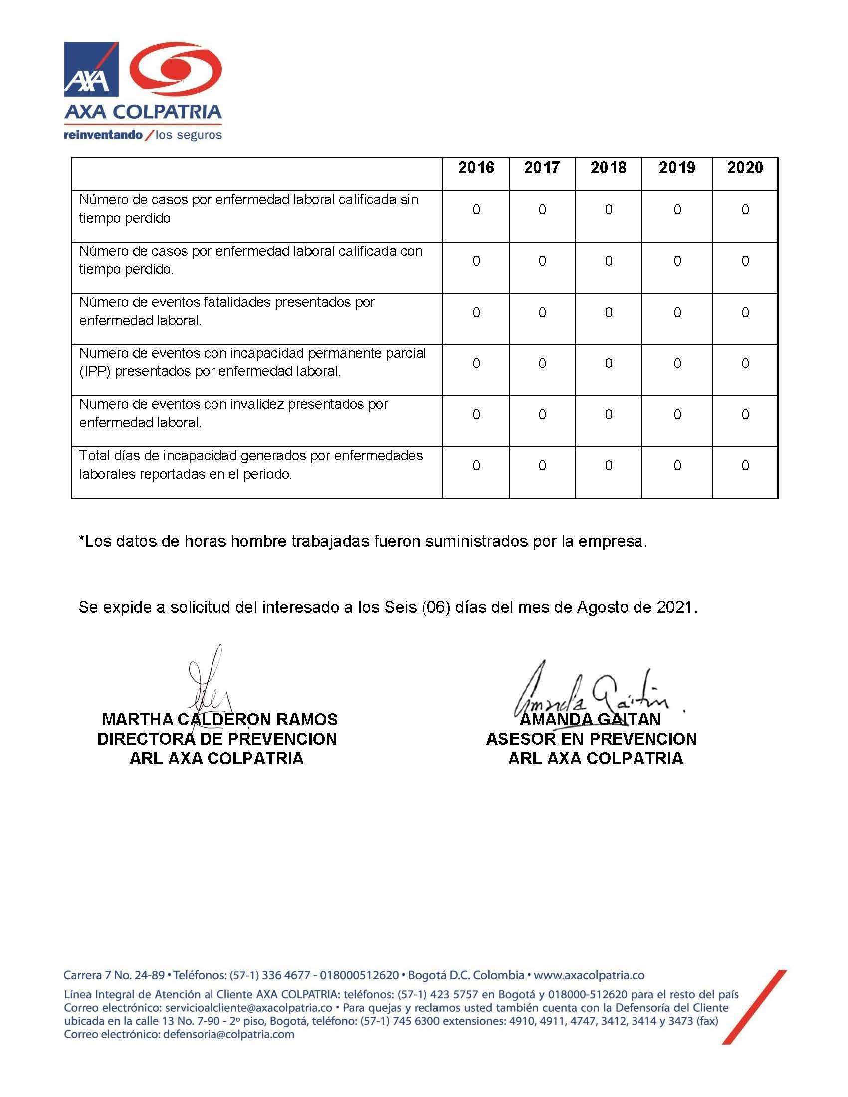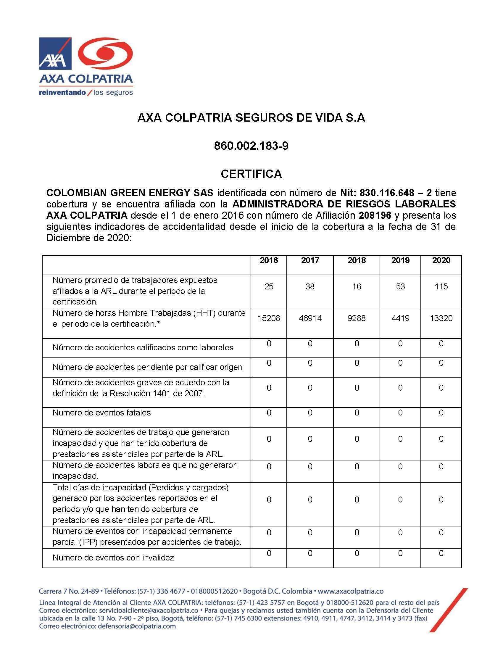 CERTIFICACIÓN 5 AÑOS DE ACCIDENTALIDAD