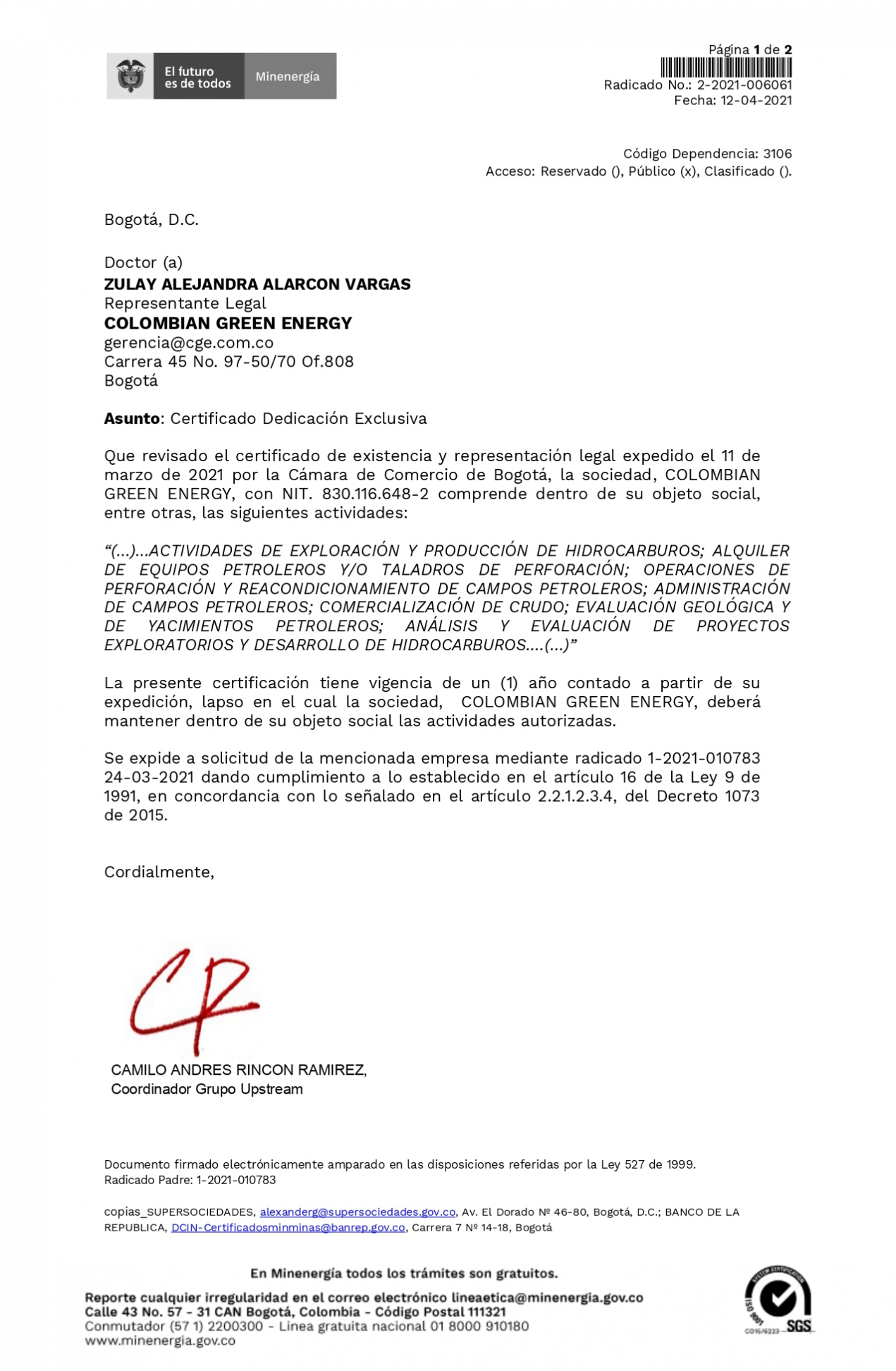 CERTIFICACIÓN CUMPLIMIENTO DECRETO 1072