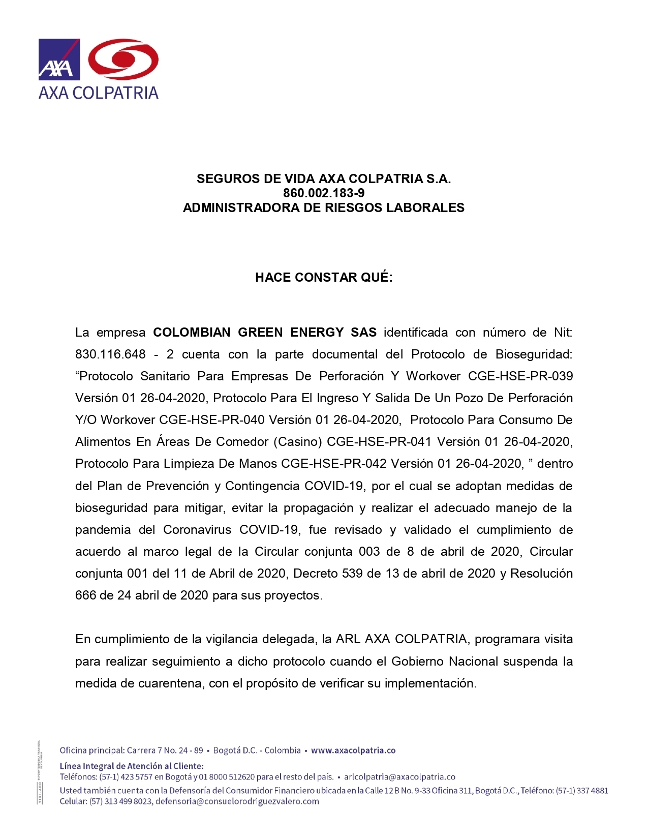CARTA DE VERIFICACIÓN DEL PROTOCOLO